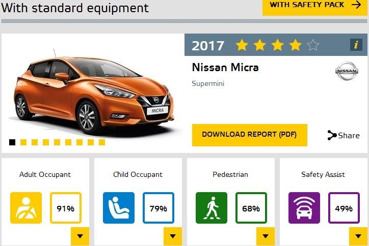 Nissan Micra, standart ekipmanla Euro NCAP'ten 4 yıldızla ayrıldı.