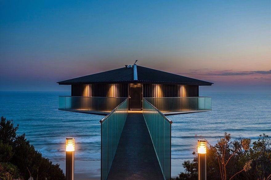 Yerden 40 metre yükselikteki bir kazık üzerine inşa edilen yapı, uzaktan görüldüğü zaman havada olduğu izlenimini vererek görenleri şaşırtıyor.